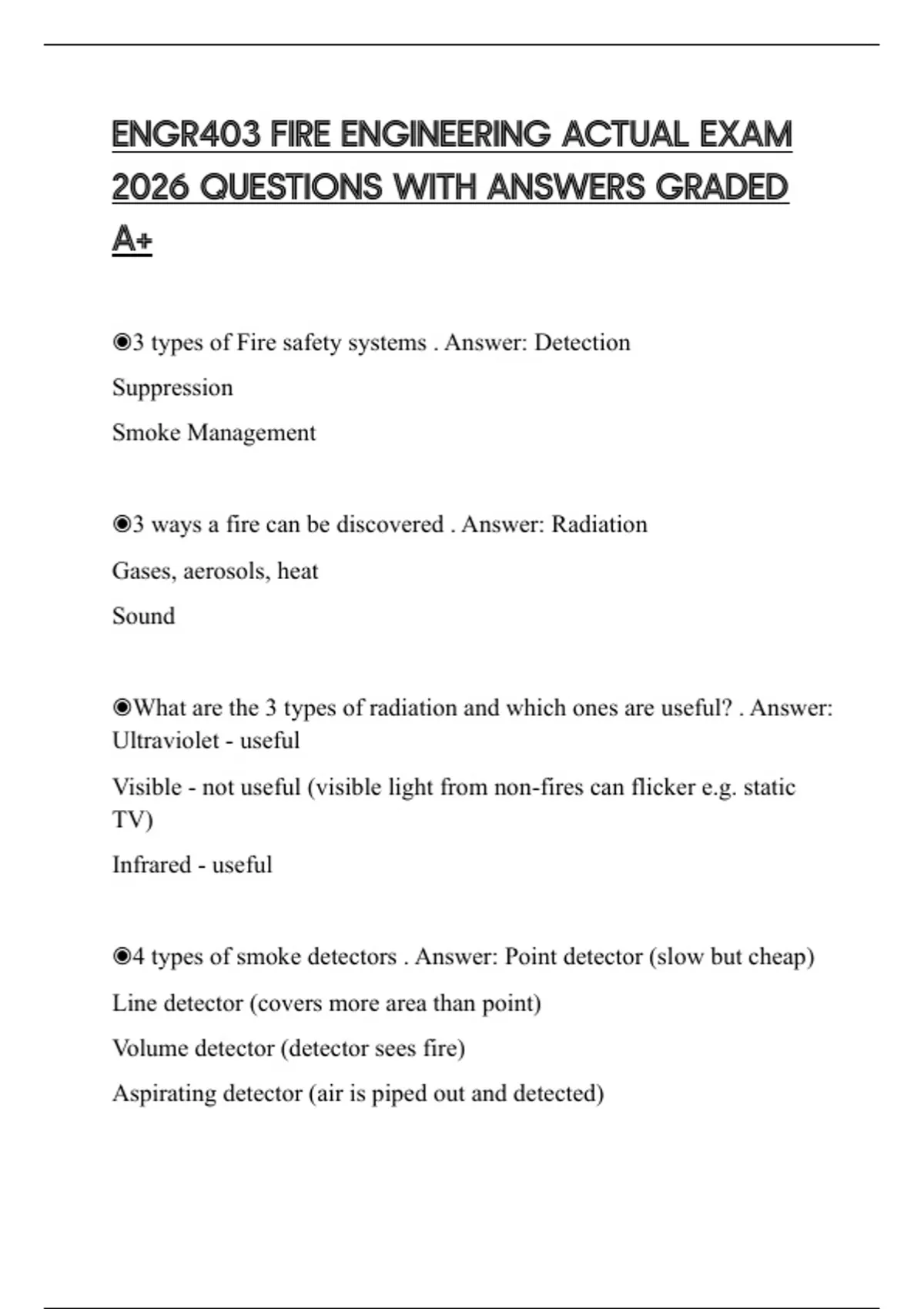 ENGR403 FIRE ENGINEERING ACTUAL EXAM 2026 QUESTIONS WITH ANSWERS GRADED A+