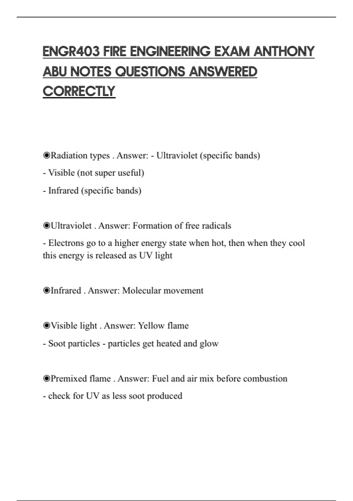 ENGR403 FIRE ENGINEERING EXAM ANTHONY ABU NOTES QUESTIONS ANSWERED CORRECTLY