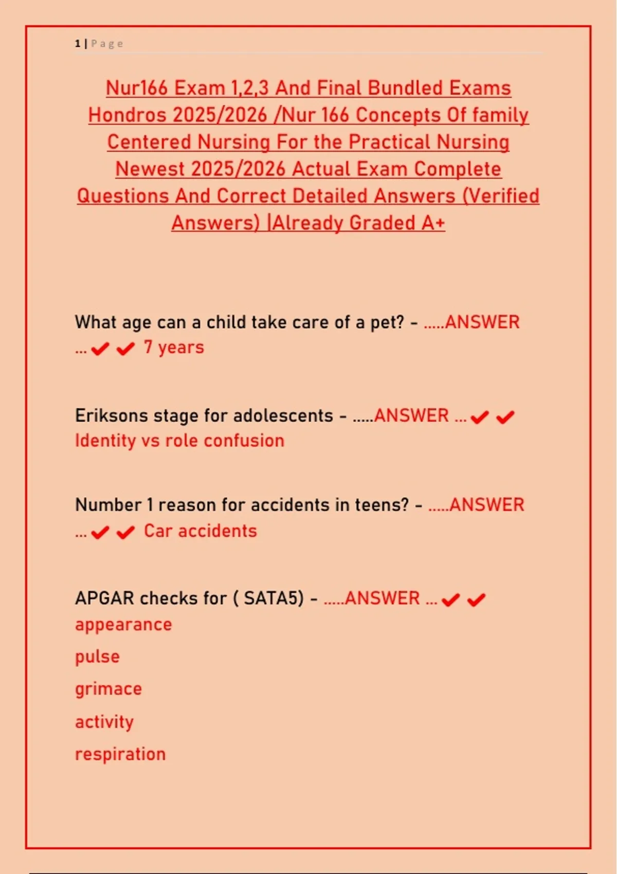 Nur166 Exam 1,2,3 And Final Bundled Exams