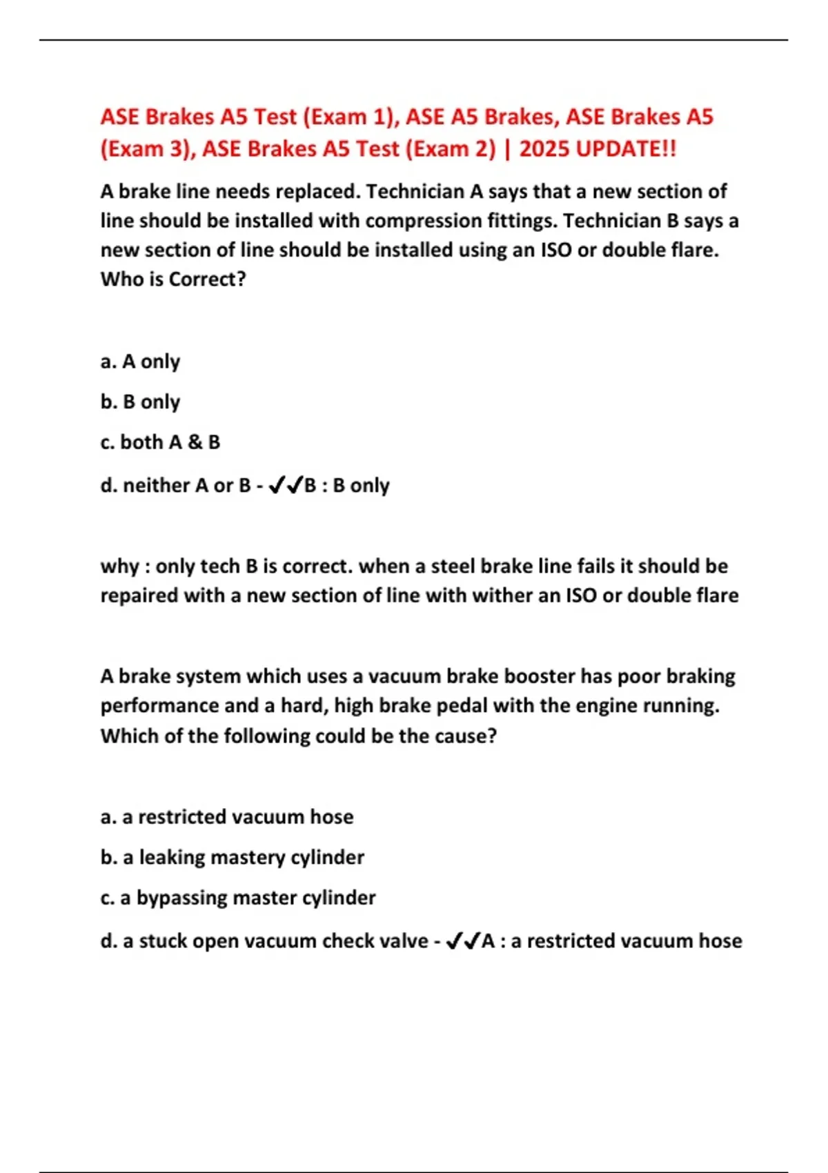 (Exam 3), ASE Brakes A5 Test (Exam 2) | 2025 UPDATE!!