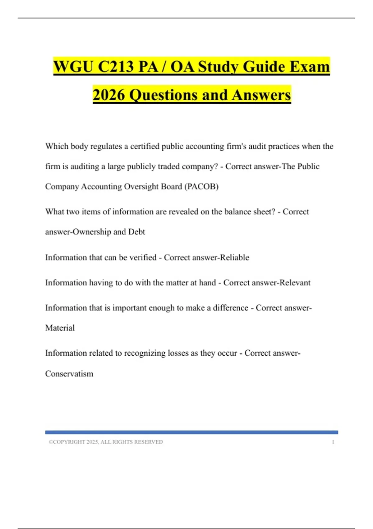 WGU C213 PA / OA Study Guide Exam 2026 Questions and Answers