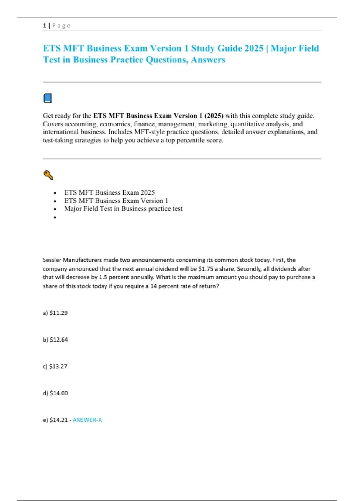 Get ready for the ETS MFT Business Exam Version 1 (2025) with this complete study guide.