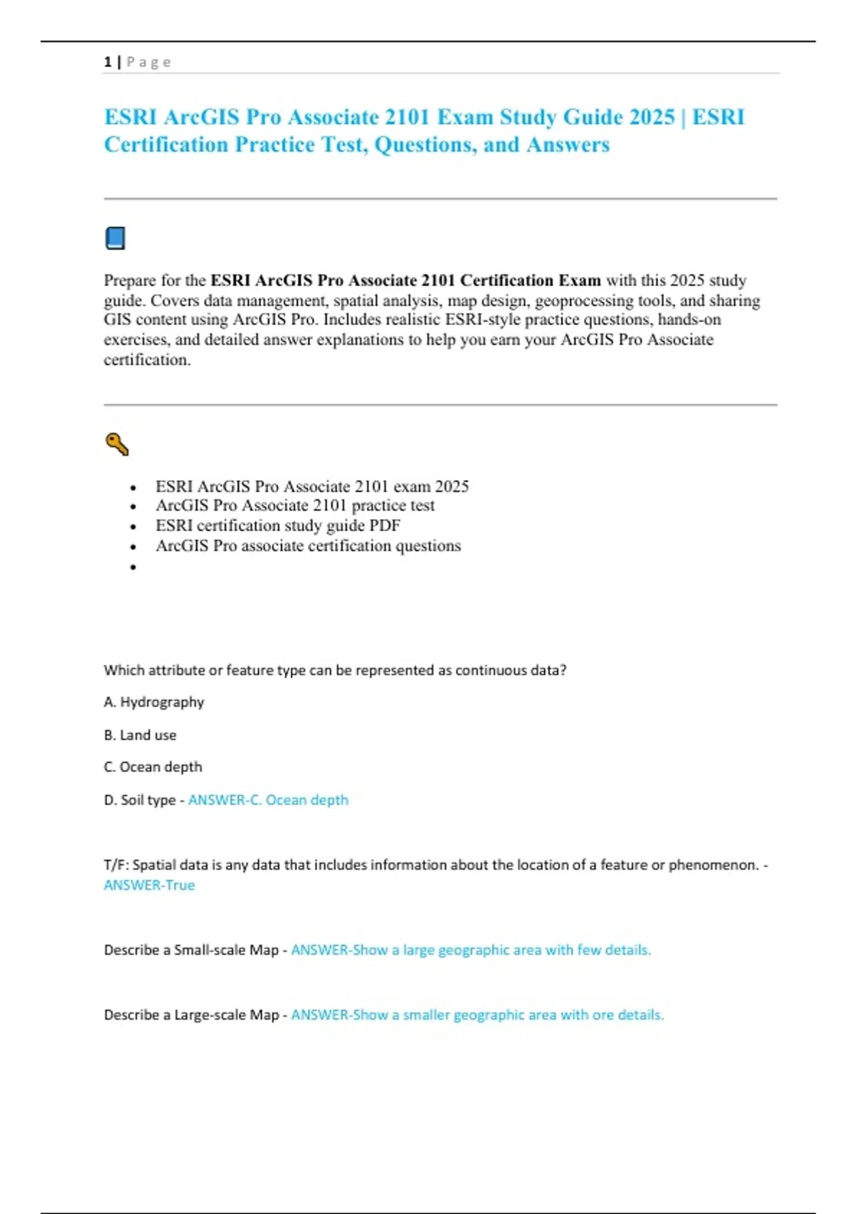 ESRI ArcGIS Pro Associate 2101 Exam Study Guide 2025 ESRI Certification Practice Test, Questions, and Answers