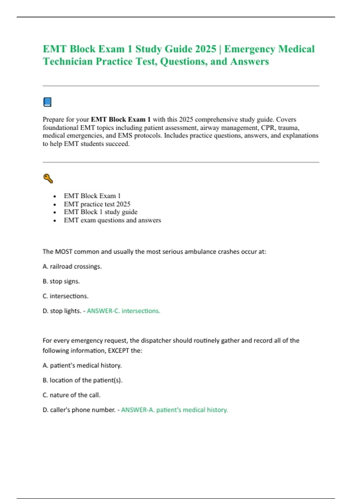 Prepare for your EMT Block Exam 1 with this 2025 comprehensive study guide. Covers
