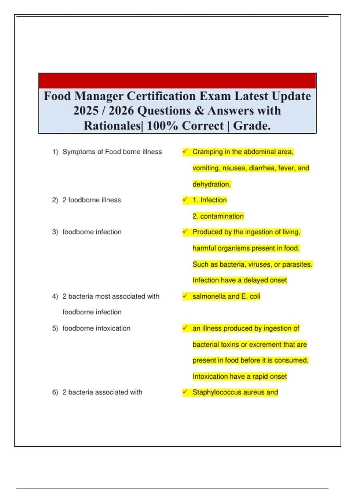 1) Symptoms of Food borne illness Cramping in the abdominal area,