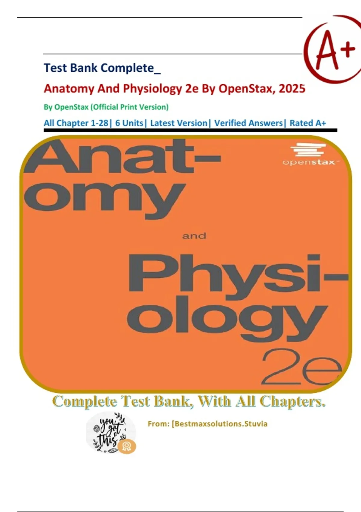 Test Bank Complete_ Anatomy And Physiology 2e By OpenStax, 2025 By OpenStax (Official Print Version) All Chapter 1-28| 6 Units| Latest Version| Verified Answers| Rated A+