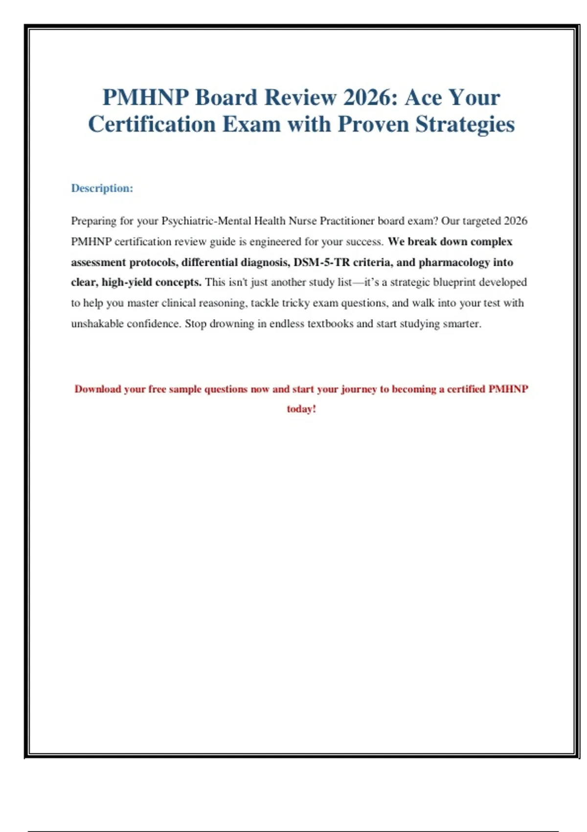 Download your free sample questions now and start your journey to becoming a certified PMHNP