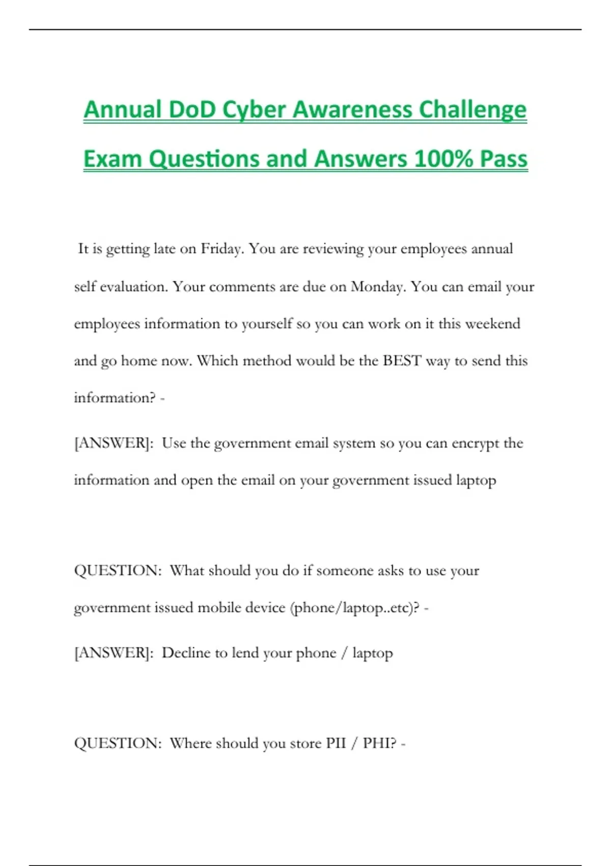 Exam Questions and Answers 100% Pass