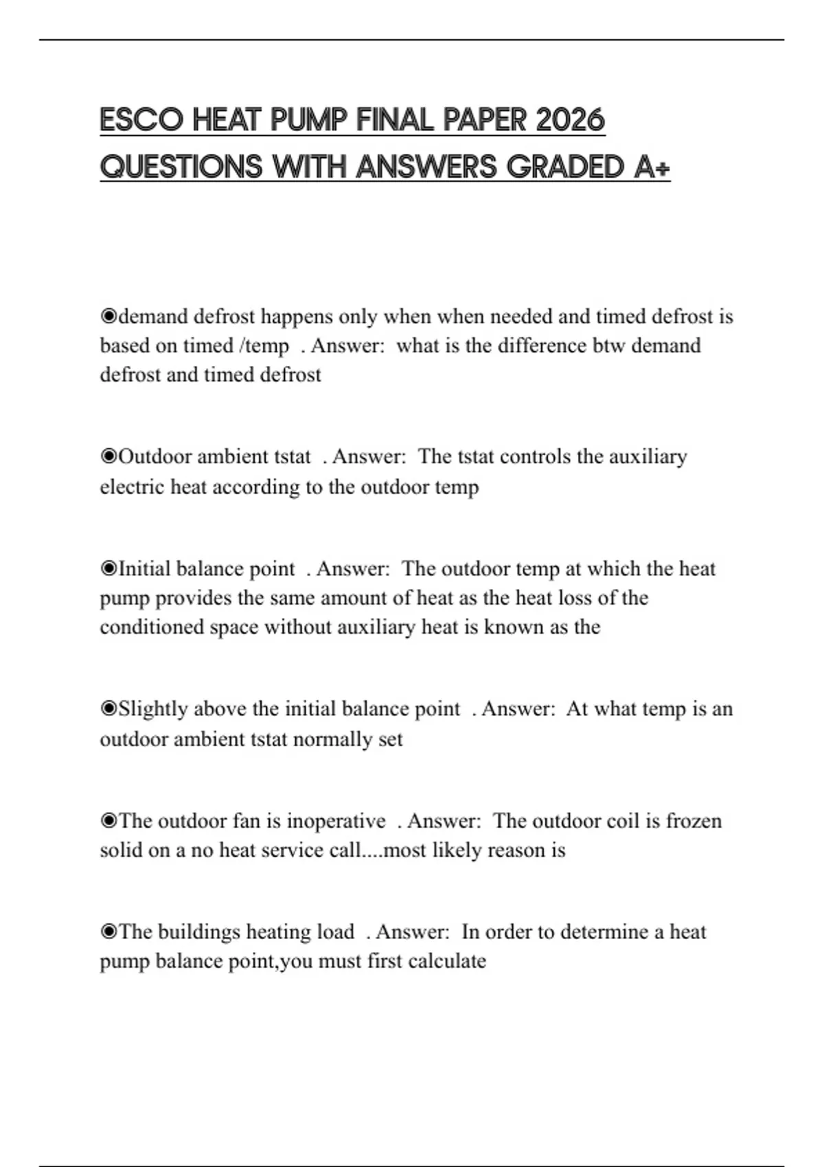 ◉Initial balance point . Answer: The outdoor temp at which the heat