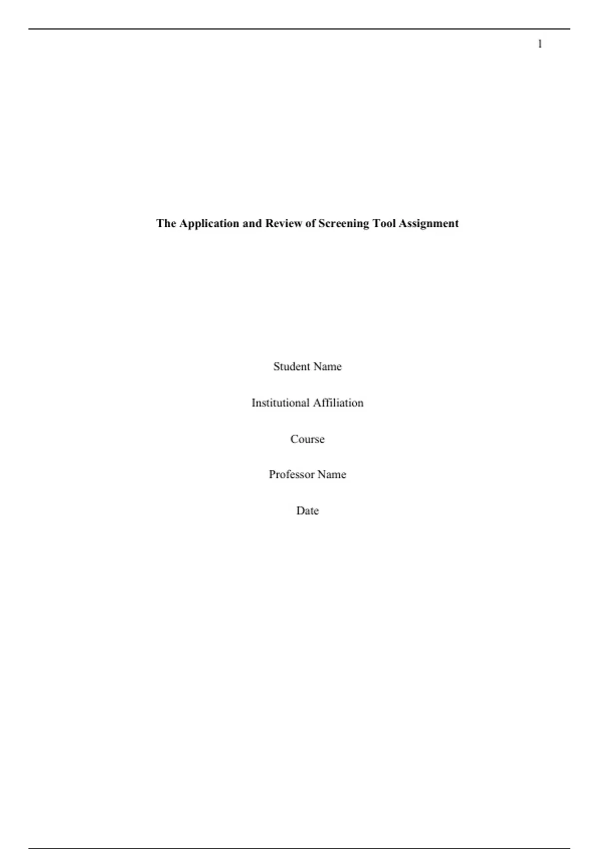 The Application and Review of Screening Tool Assignment