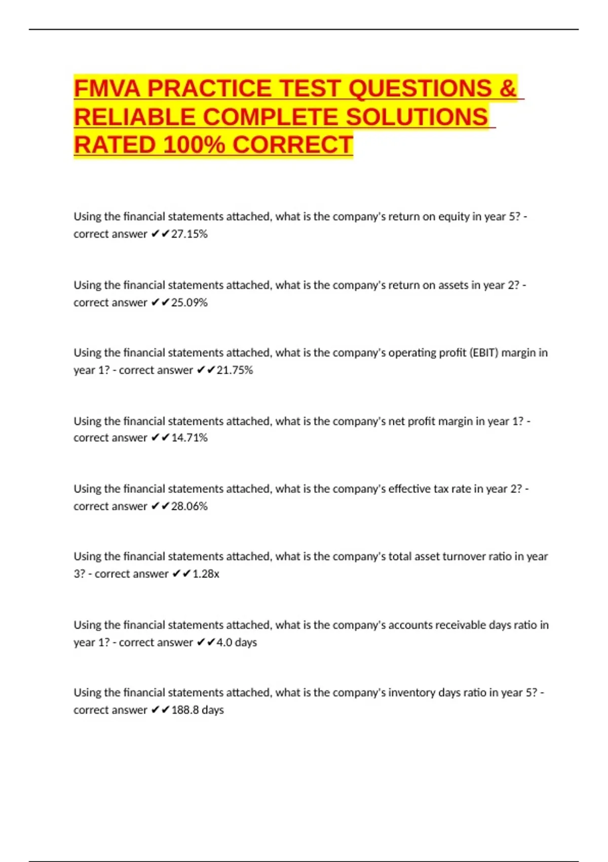 FMVA PRACTICE TEST QUESTIONS & RELIABLE COMPLETE SOLUTIONS RATED 100% CORRECT