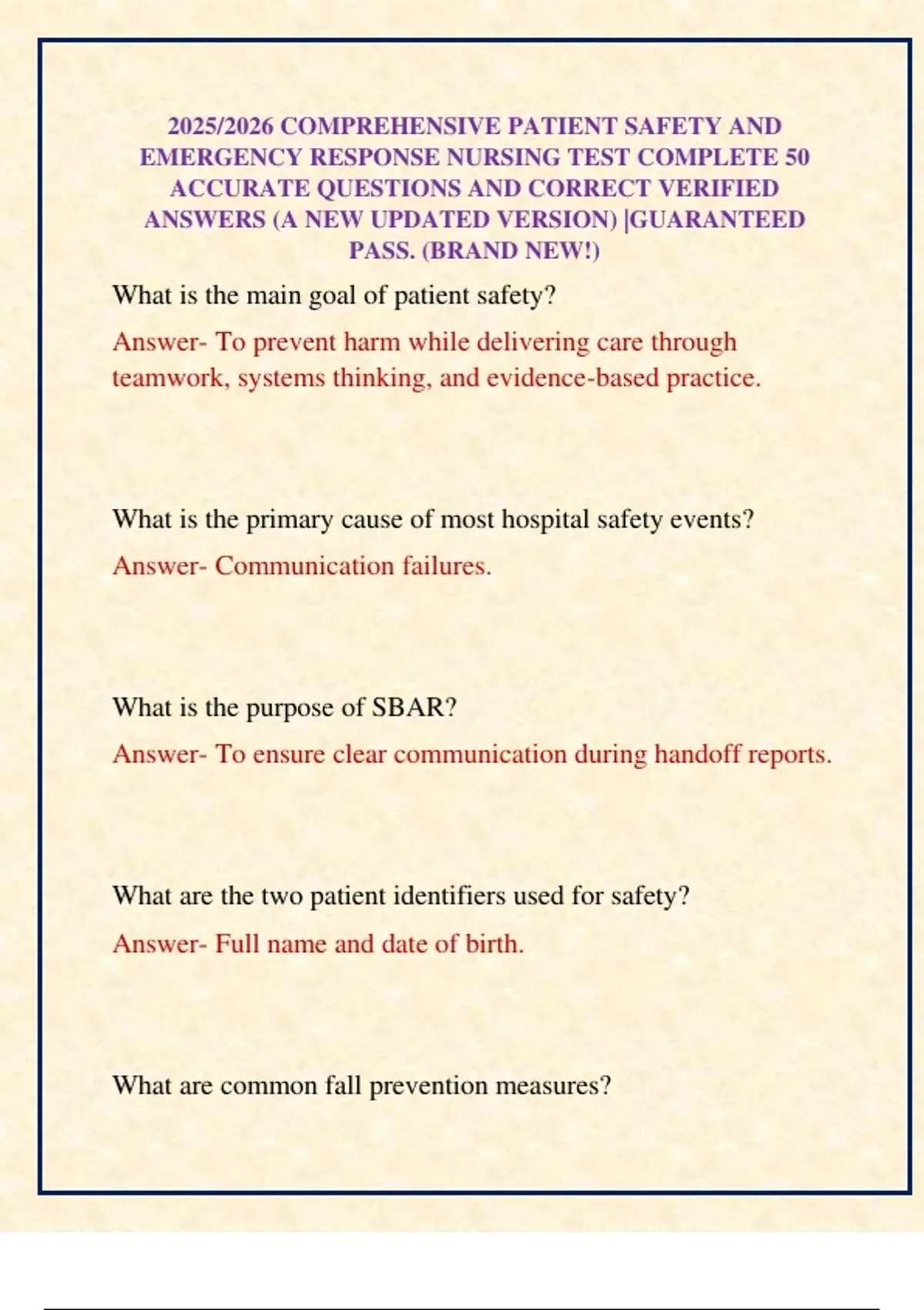 EMERGENCY RESPONSE NURSING TEST COMPLETE 50