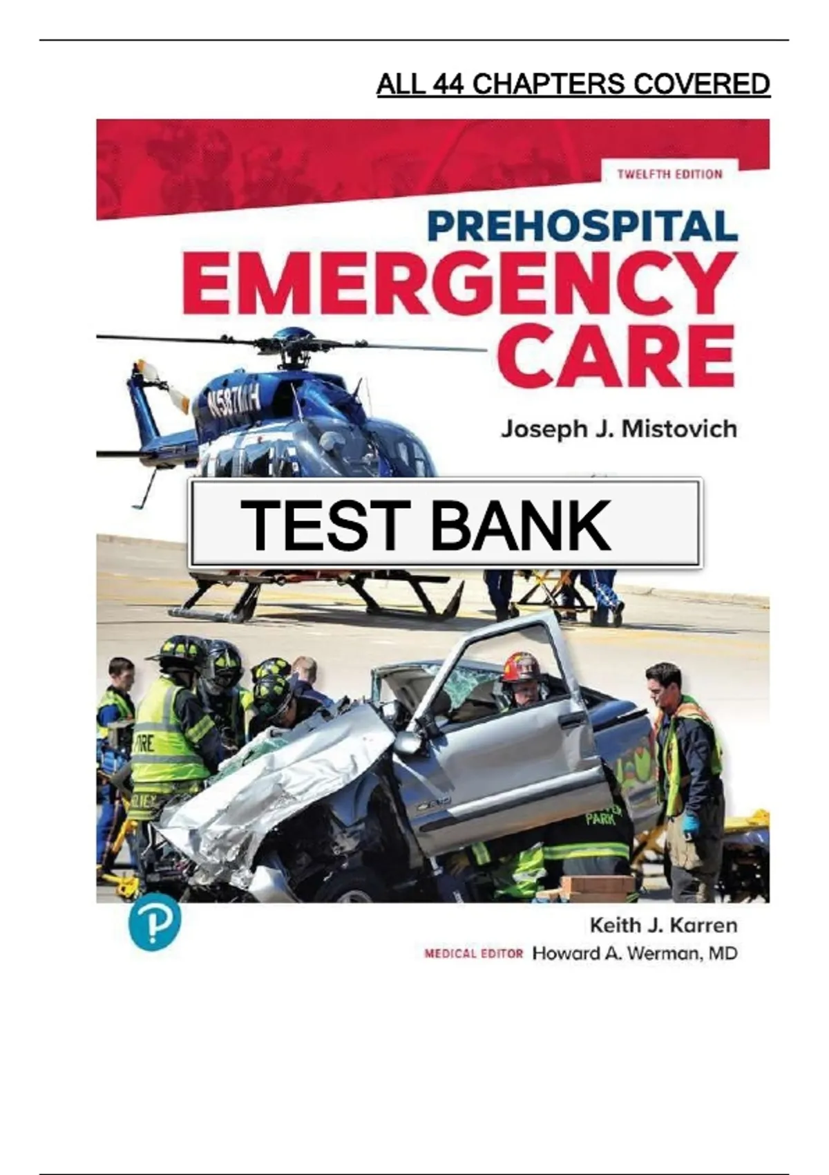 INSTANT PDF DOWNLOAD – Complete Test Bank for Prehospital Emergency Care (12th Edition, 2024) by Joseph J. Mistovich and Keith J. Karren. Includes all 44 chapters with verified multiple-choice and case-based questions covering patient assessment, trauma, airway management, and prehospital interventions. Perfect for EMT, AEMT, and paramedic students preparing for certification or course exams. 100% verified answers | Instructor-quality questions | Updated for 2024 EMT curriculum. Prehospital Emergency Care Test Bank, Mistovich 12th Edition Test Bank, EMT Paramedic Exam Prep, Keith Karren Test Bank PDF, EMT Practice Test Questions, Emergency Medical Technician Test Bank, Prehospital Assessment Exam Questions, Airway Management Test Bank, Paramedic Study Guide PDF, Trauma Care Test Bank, EMT-Basic Questions and Answers, Prehospital Care PDF Download, Emergency Medicine Test Bank, Verified EMT Test Bank, Advanced EMT Practice Test, Patient Assessment Scenarios, EMS Education Exam Prep, EMT Certification Practice, Prehospital Care Workbook, EMT Instructor Test Bank