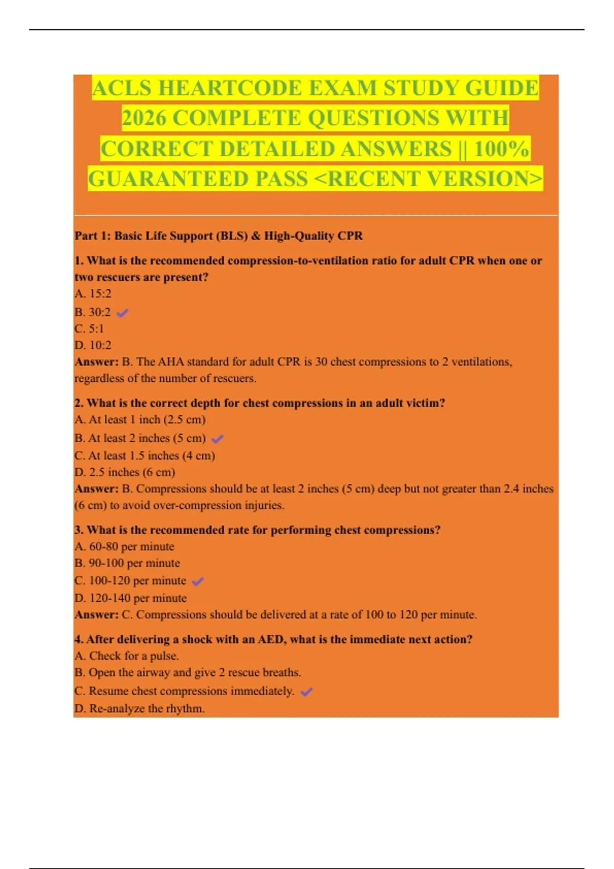 ACLS HEARTCODE EXAM STUDY GUIDE
