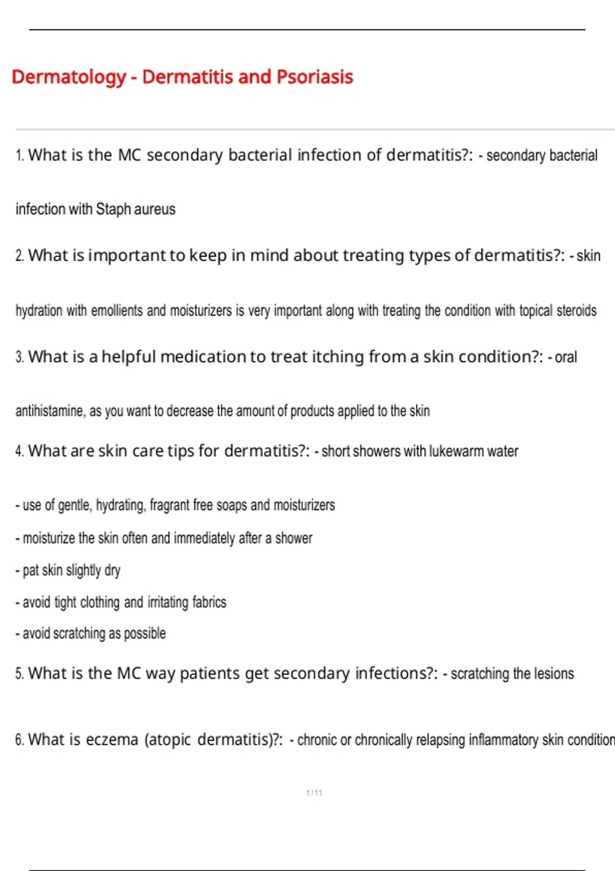 Dermatology - Dermatitis and Psoriasis Questions and Answers (100 %Score) Latest Updated 2026
