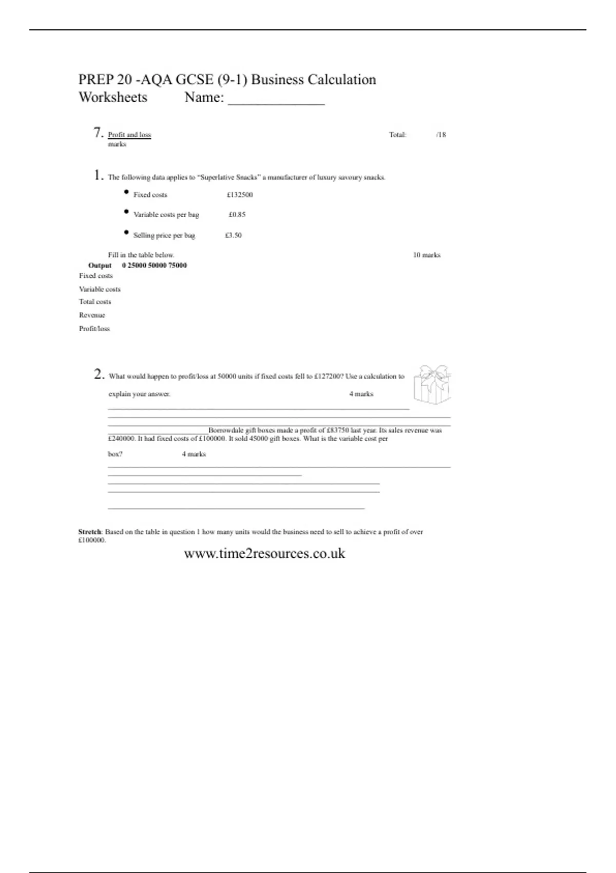 PREP 20 -AQA GCSE (9-1) Business Calculation