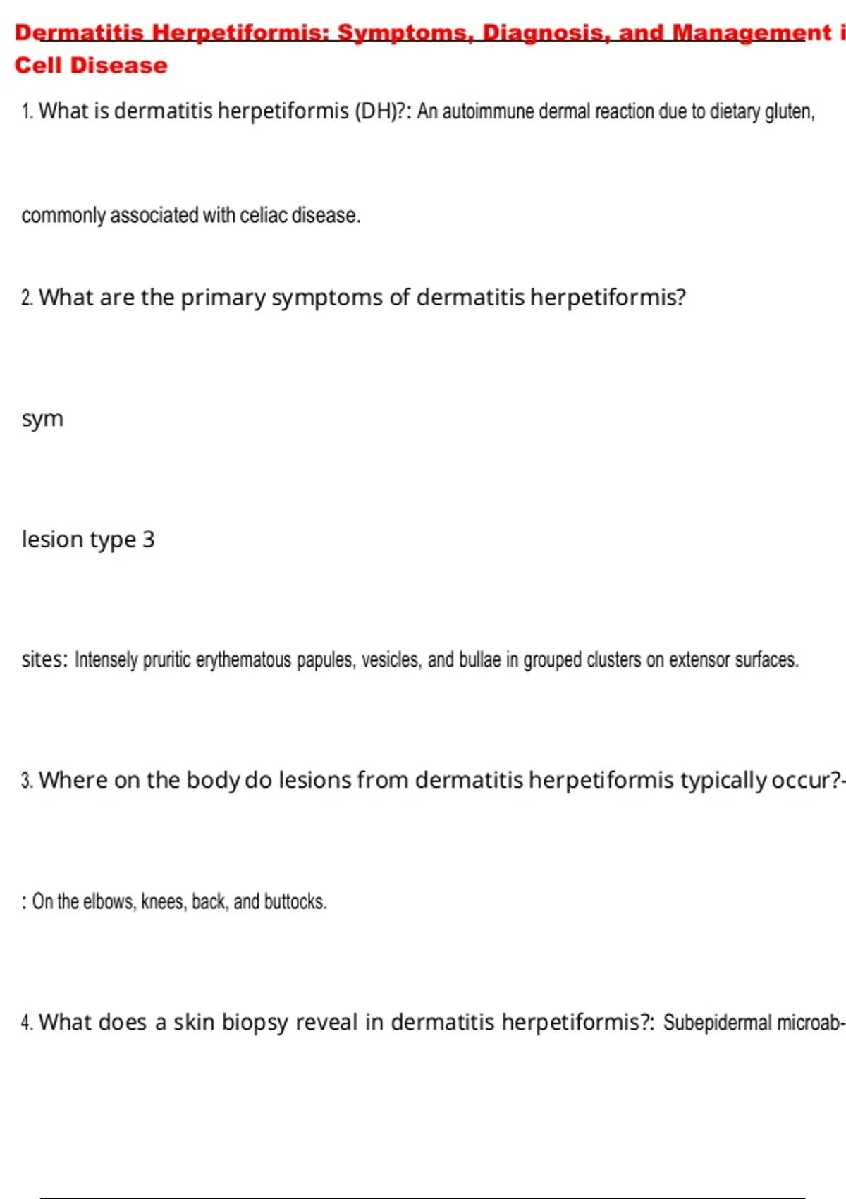 1. What is dermatitis herpetiformis (DH)?: An autoimmune dermal reaction due to dietary gluten,