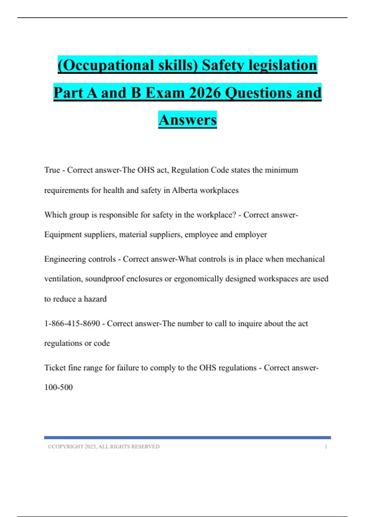 Ticket fine range for failure to comply to the OHS regulations - Correct answer-