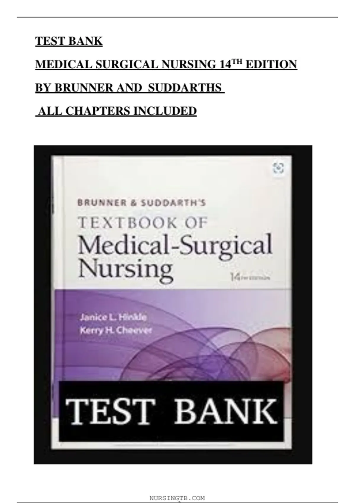 Test Bank for Brunner & Suddarth's Textbook of Medical-Surgical Nursing, 14th Edition by Janice L. Hinkle & Kerry H. Cheever (2025/2026 Latest Update)
