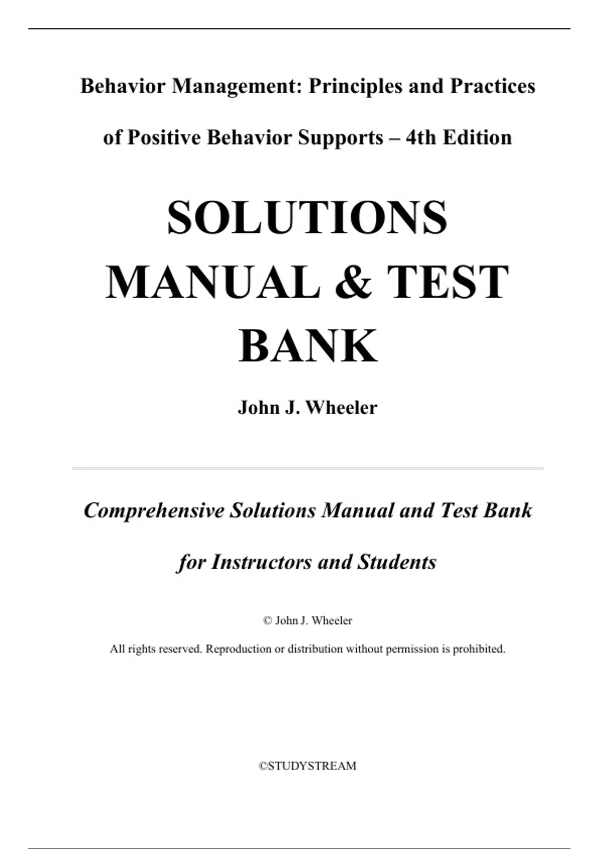 Solutions Manual & Test Bank For Behavior Management: Principles and Practices of Positive Behavior Supports 4th Edition by John J. Wheeler
