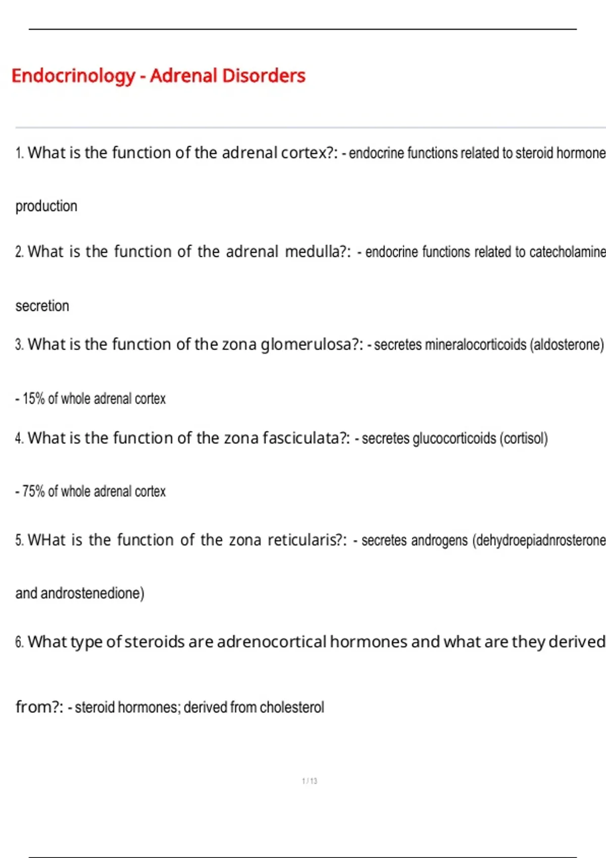 1. What is the function of the adrenal cortex?: - endocrine functions related to steroid hormone