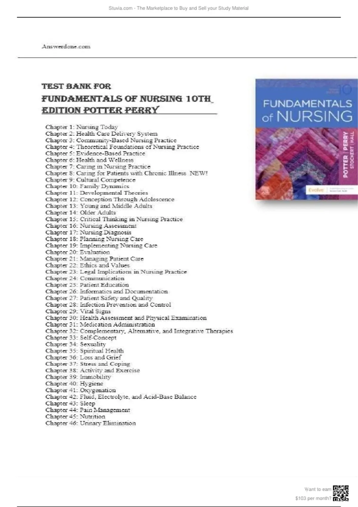 Test Bank – Fundamentals of Nursing, 10th Edition by Potter & Perry (Complete Chapters 1–52, Verified Questions & Answers 2026)