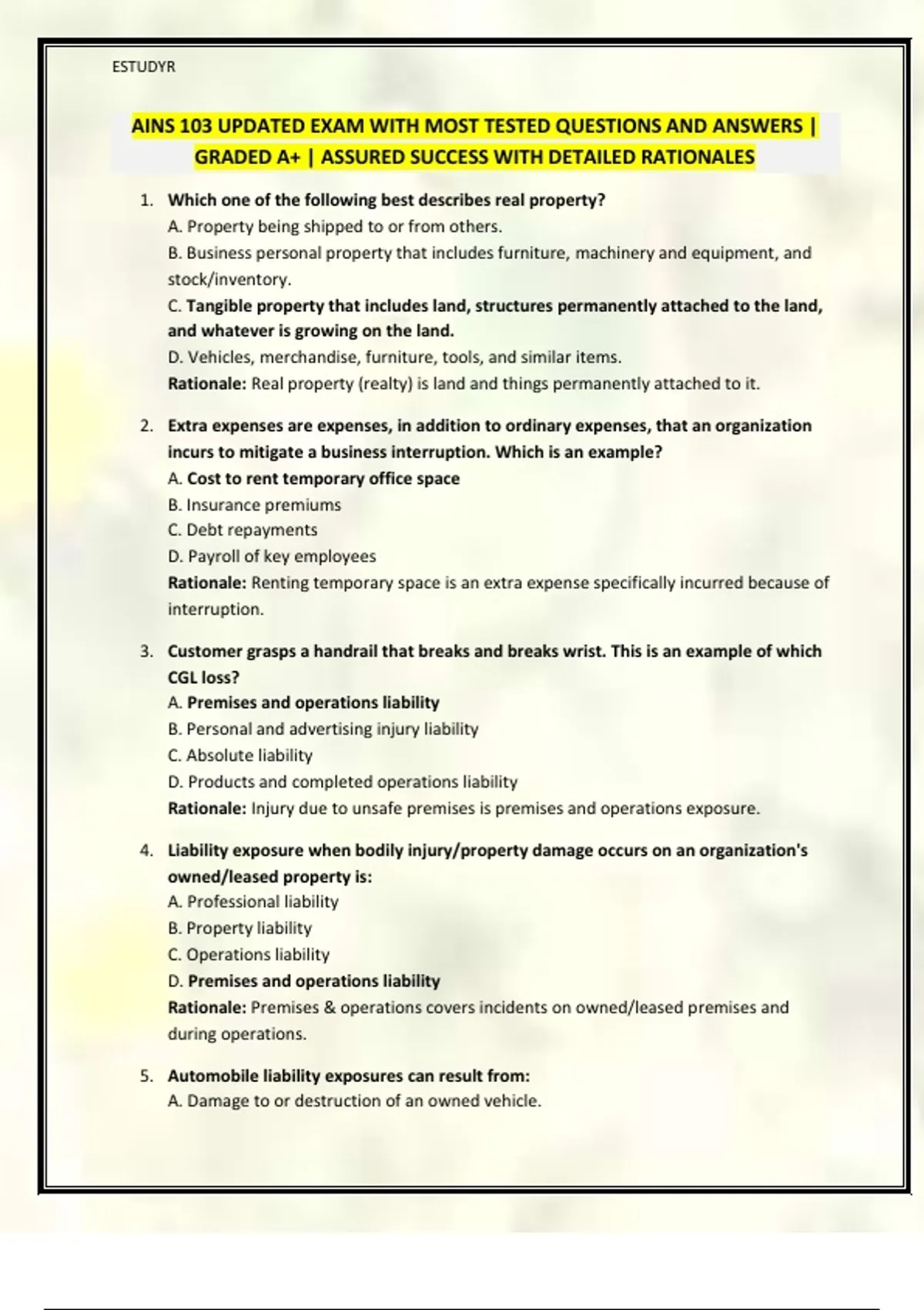 AINS 103 UPDATED EXAM WITH MOST TESTED QUESTIONS AND ANSWERS |