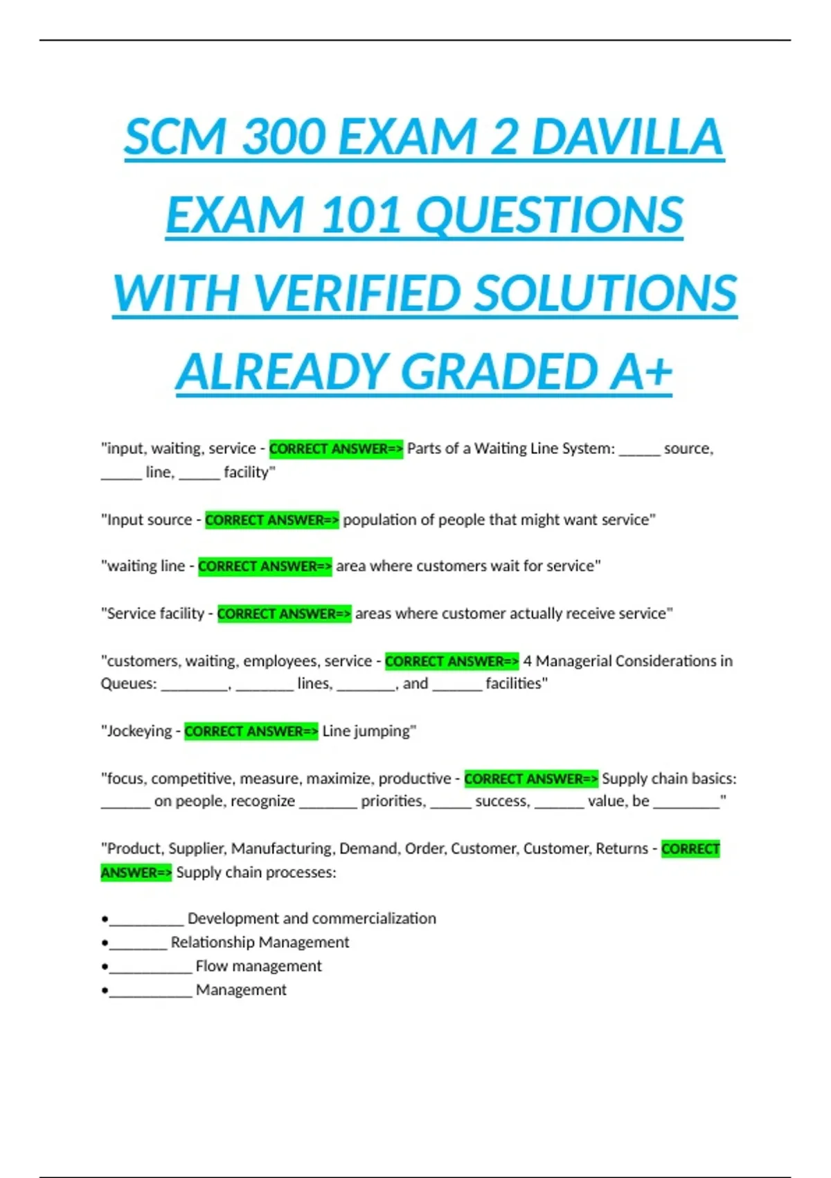 "input, waiting, service - CORRECT ANSWER=> Parts of a Waiting Line System: _____ source,