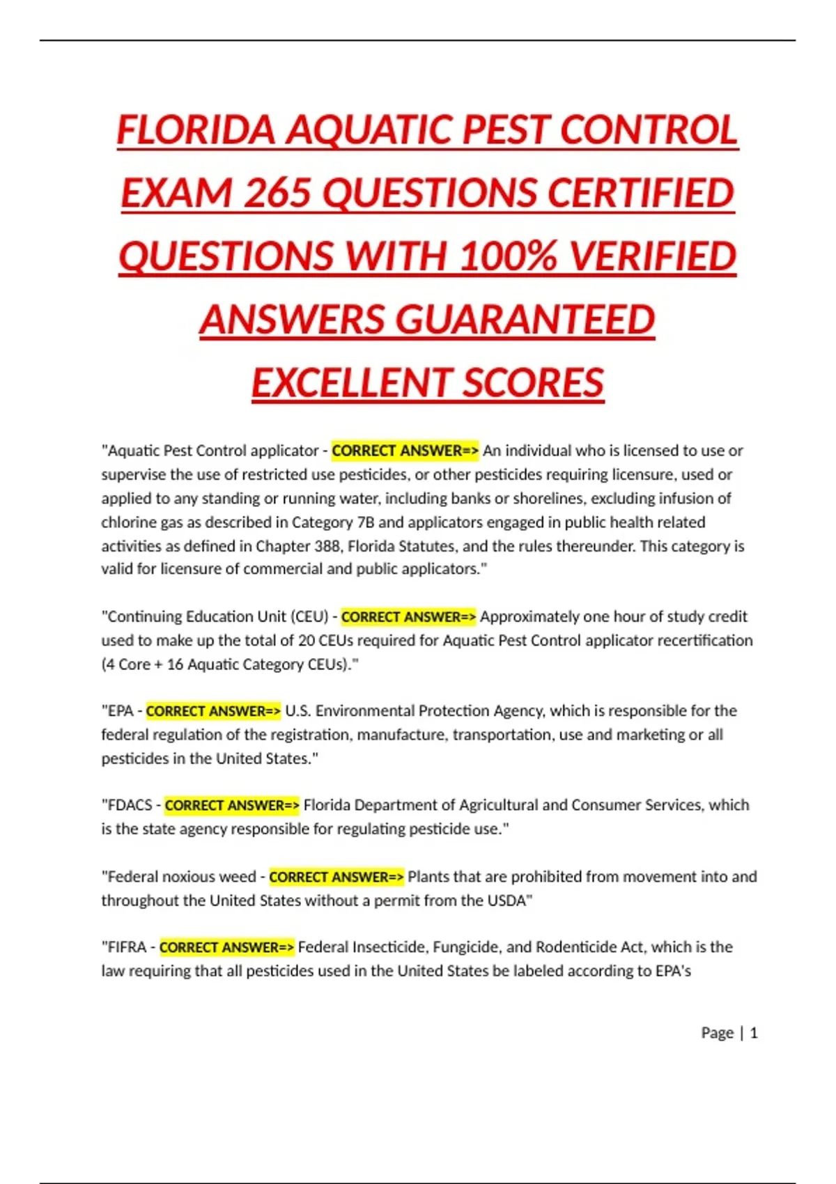 "Aquatic Pest Control applicator - CORRECT ANSWER=> An individual who is licensed to use or