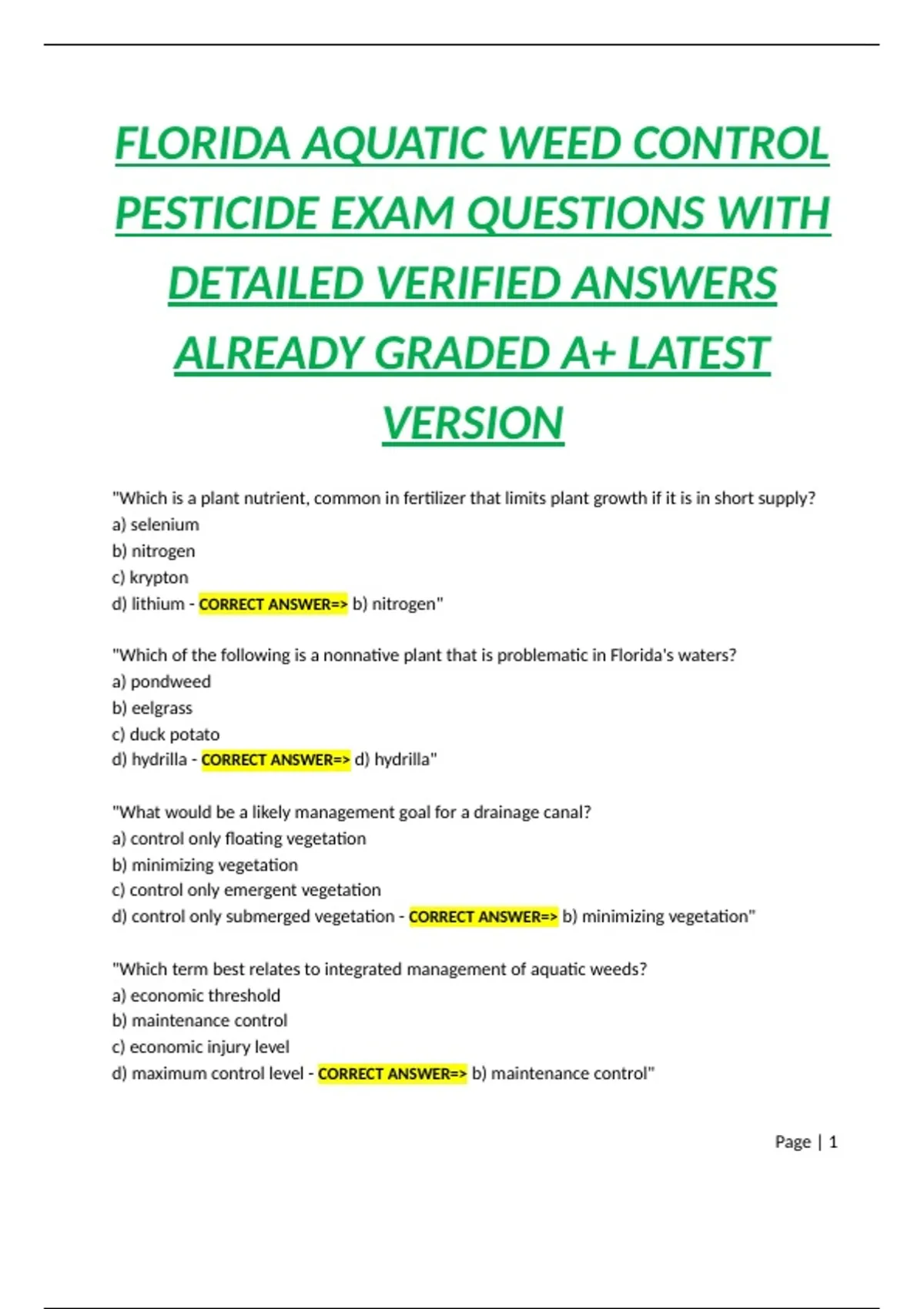 "FL Noxious Weed List and Prohibited Aquatic Plant List - CORRECT ANSWER=> FDACS