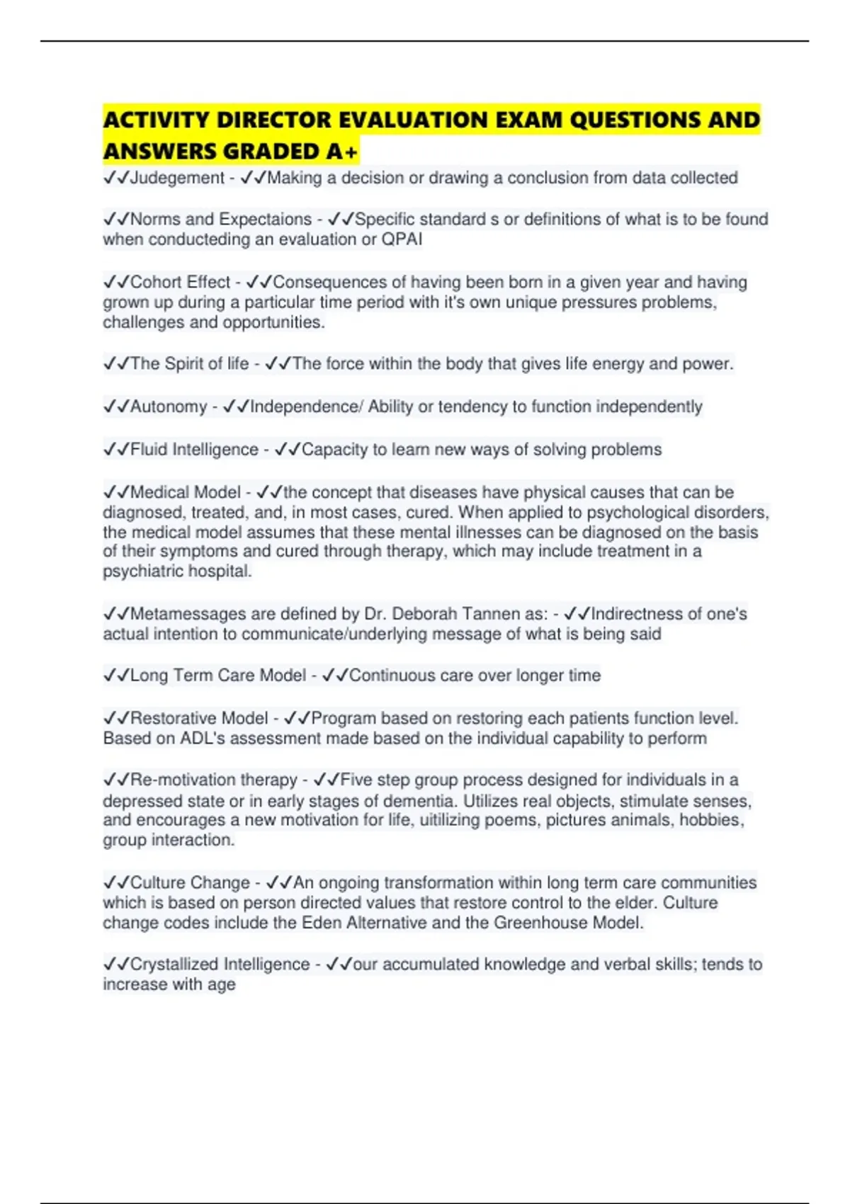 ACTIVITY DIRECTOR EVALUATION EXAM QUESTIONS AND ANSWERS GRADED A+