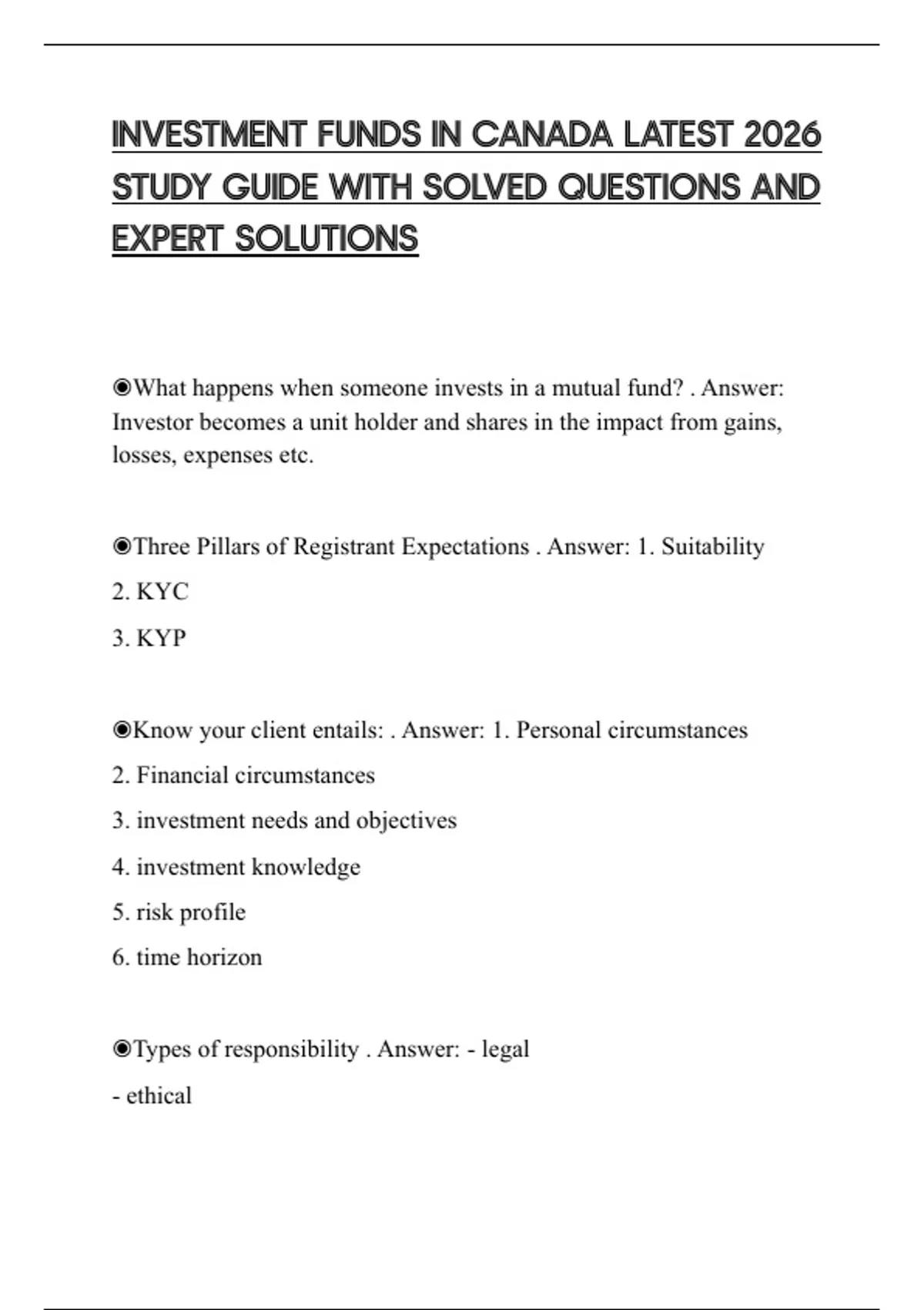 INVESTMENT FUNDS IN CANADA LATEST 2026 STUDY GUIDE WITH SOLVED QUESTIONS AND EXPERT SOLUTIONS