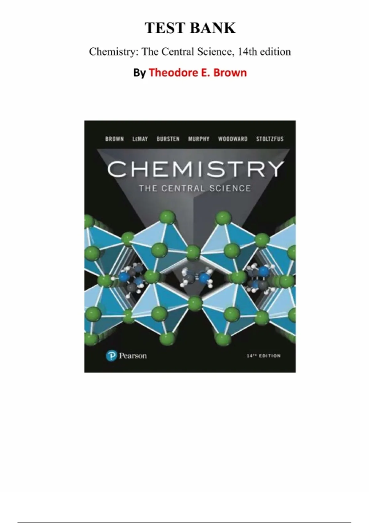 Chemistry: The Central Science, 14th Edition – Theodore E. Brown | Complete Test Bank (Chapters 1–24)