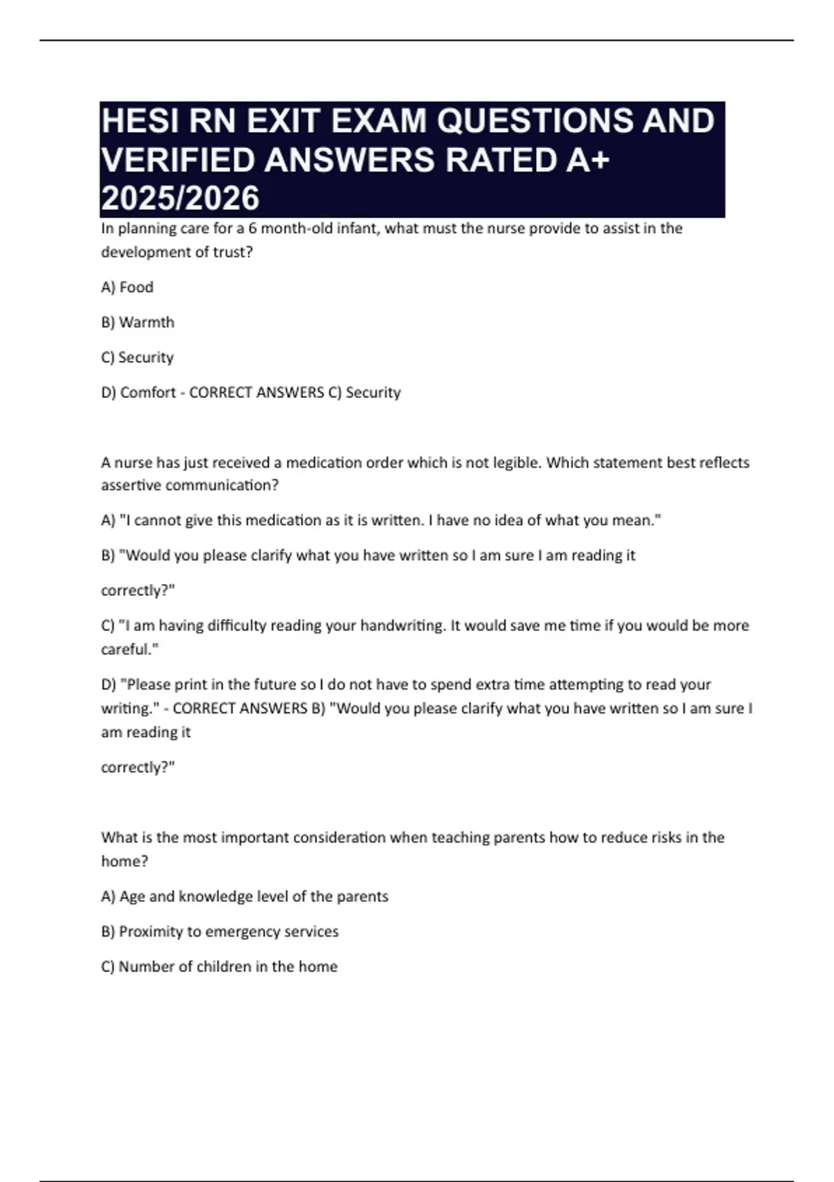 D) Comfort - CORRECT ANSWERS C) Security