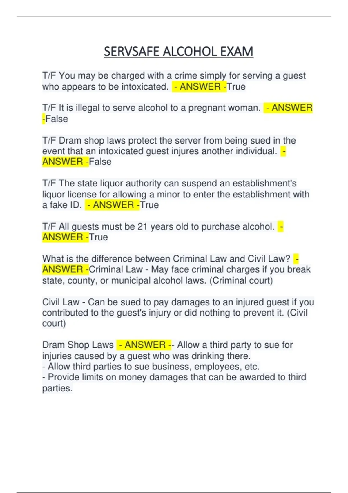 SERVSAFE ALCOHOL EXAM