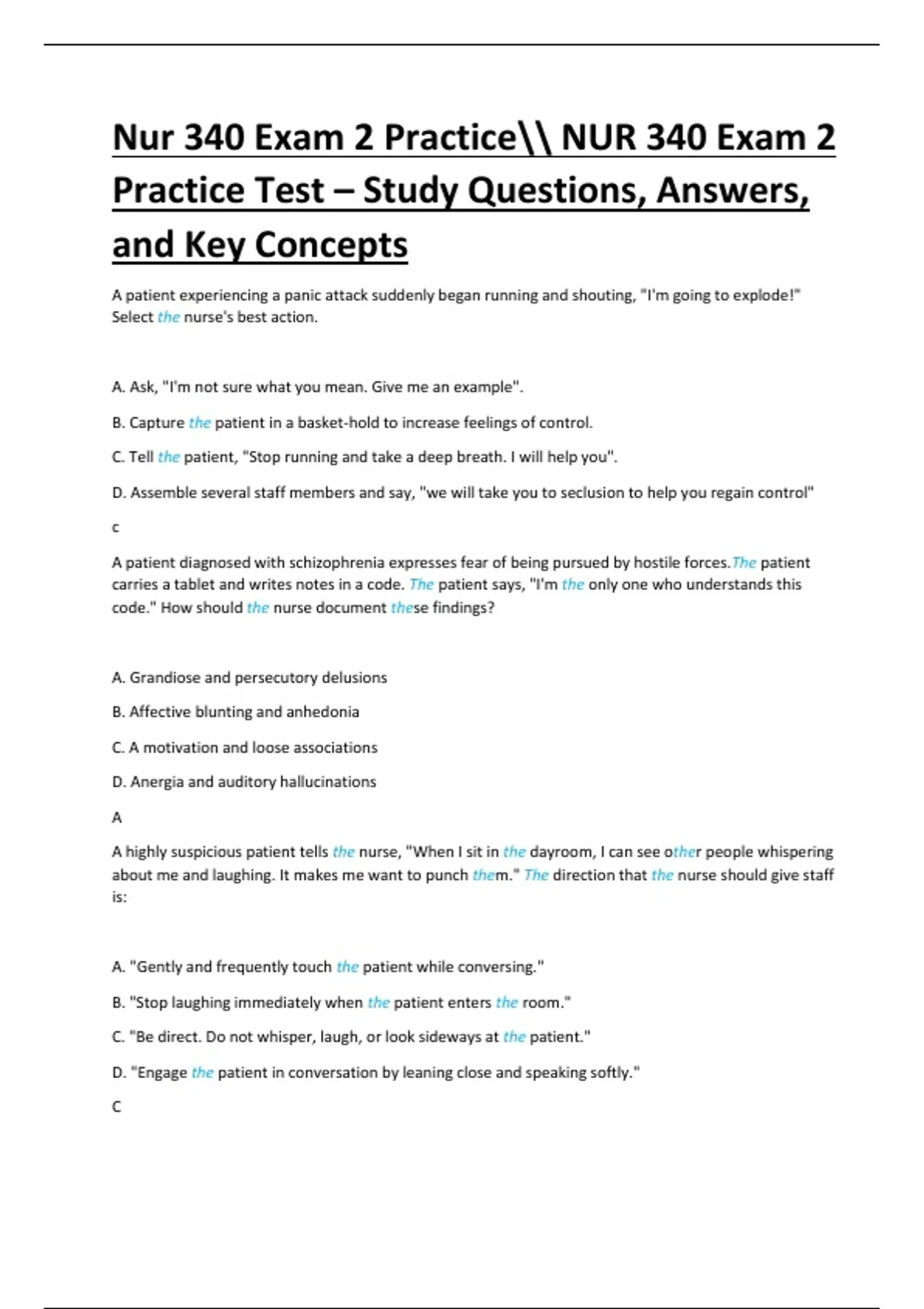 NUR 340 Exam 2 Practice Test – Study Questions, Answers, and Key Concepts 2025