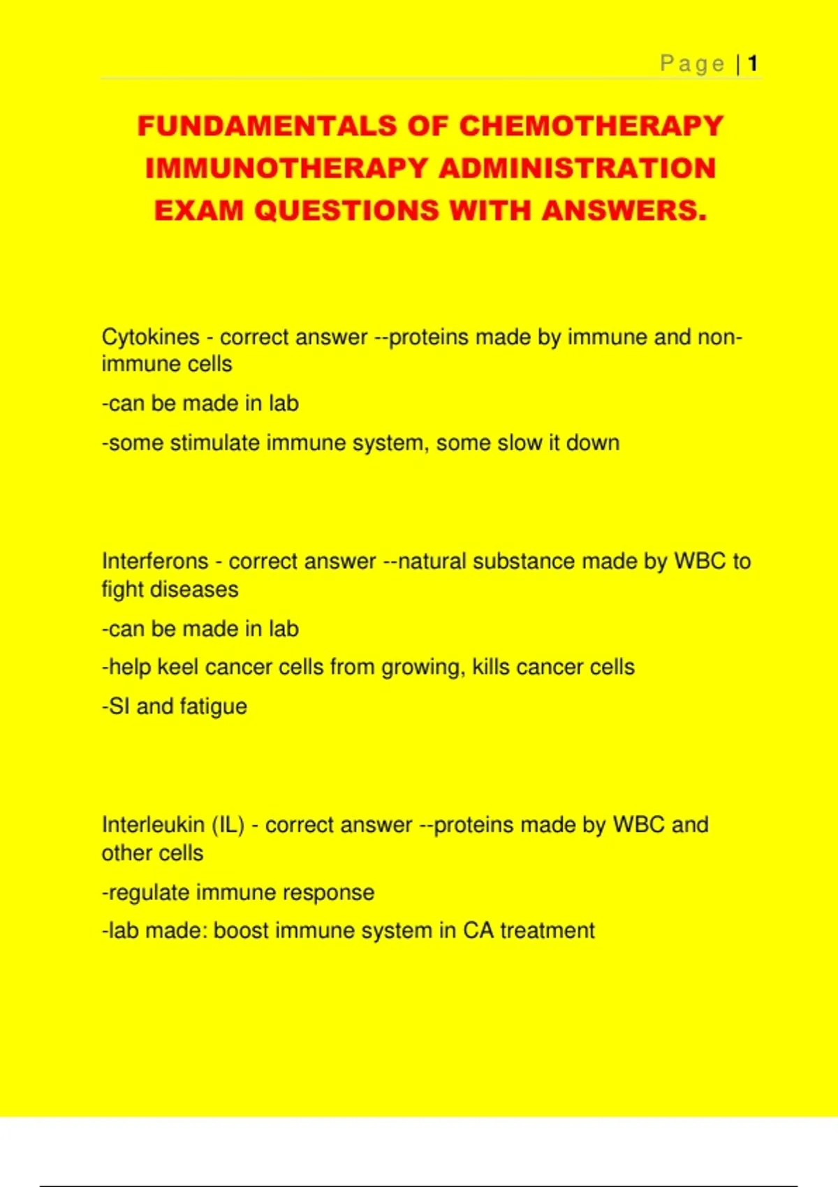 FUNDAMENTALS OF CHEMOTHERAPY IMMUNOTHERAPY ADMINISTRATION EXAM QUESTIONS WITH ANSWERS.