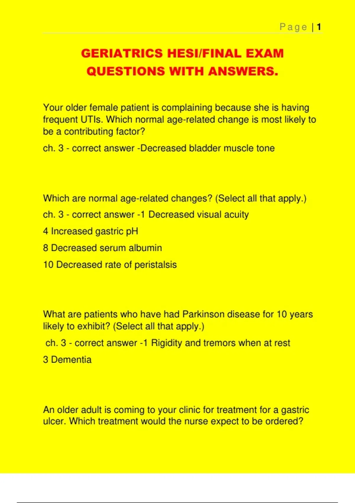 GERIATRICS HESI/FINAL EXAM
