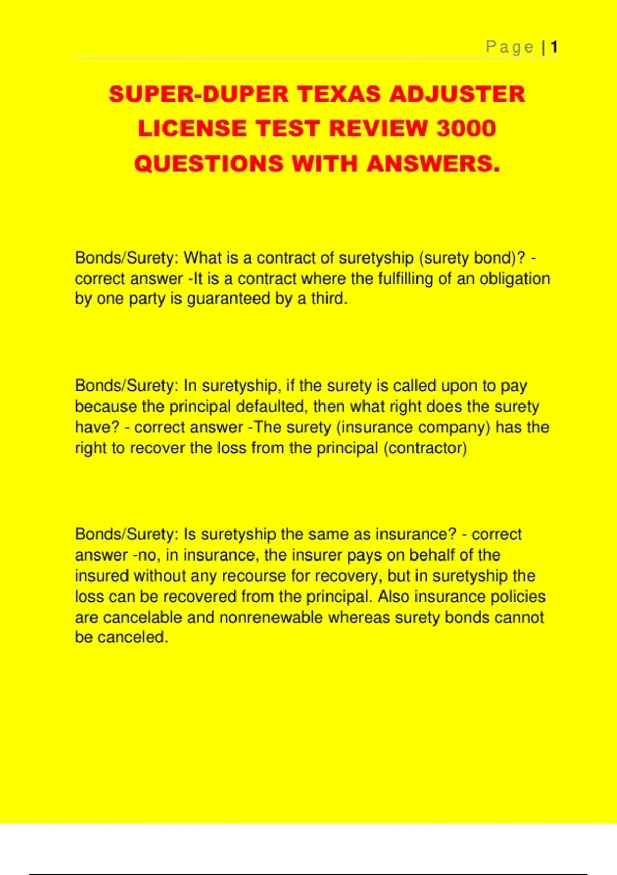SUPER-DUPER TEXAS ADJUSTER LICENSE TEST REVIEW 3000 QUESTIONS WITH ANSWERS.
