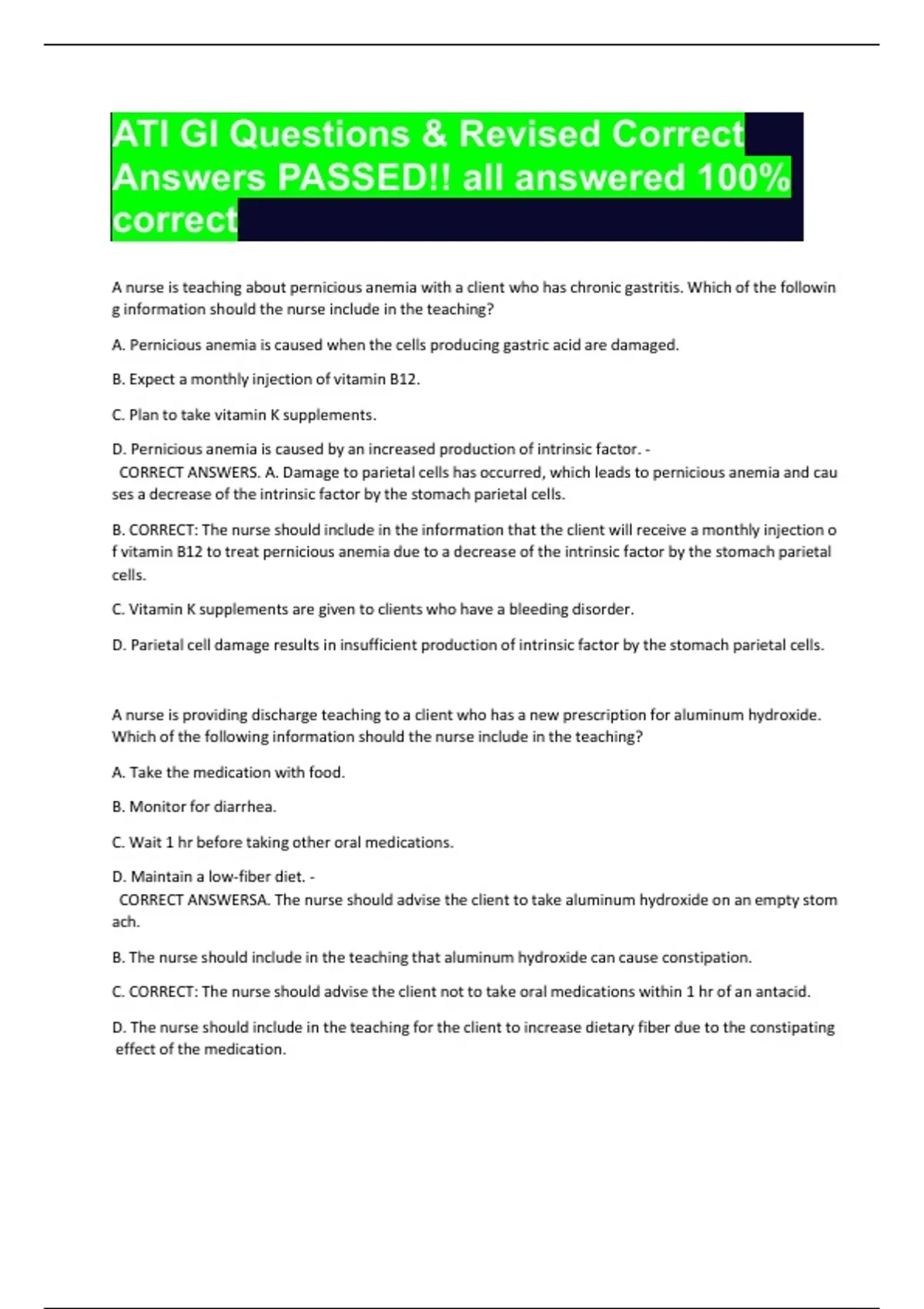 Exam of 16 pages for the course ATI GASTROINTESTINAL SYSTEM at ATI GASTROINTESTINAL SYSTEM (ATI GI Q)