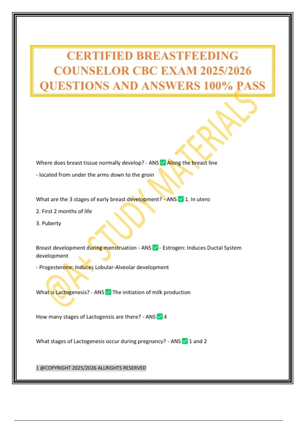 CERTIFIED BREASTFEEDING COUNSELOR CBC EXAM 2025/2026 QUESTIONS AND ANSWERS 100% PAS