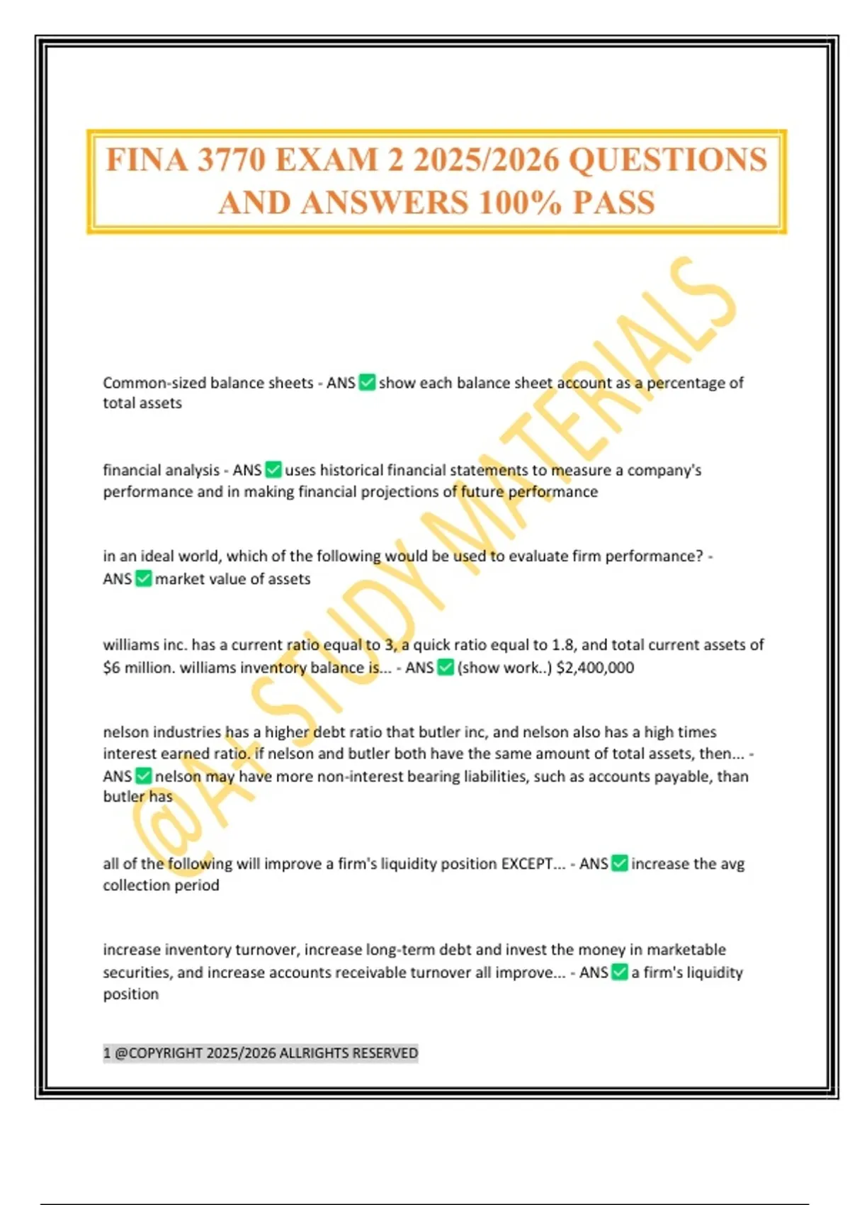 FINA 3770 EXAM 2 2025/2026 QUESTIONS AND ANSWERS 100% PASS