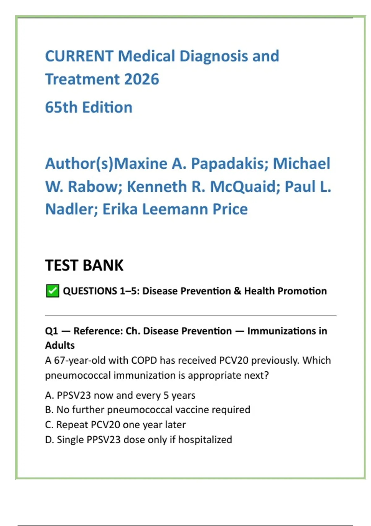Q1 — Reference: Ch. Disease Prevention — Immunizations in