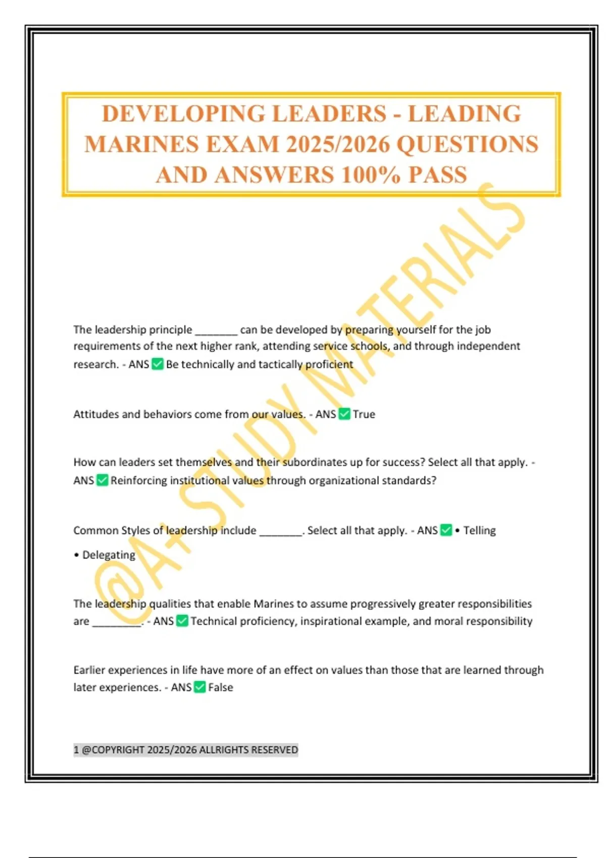 DEVELOPING LEADERS - LEADING MARINES EXAM 2025/2026 QUESTIONS AND ANSWERS 100% PASS