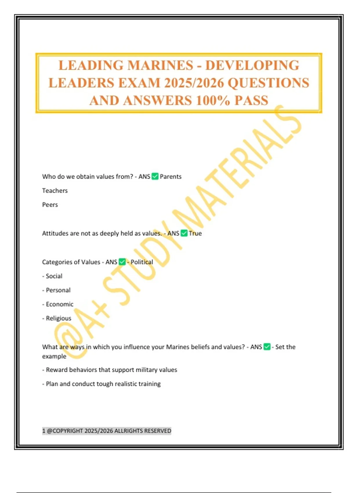 LEADING MARINES - DEVELOPING LEADERS EXAM 2025/2026 QUESTIONS AND ANSWERS 100% PASS