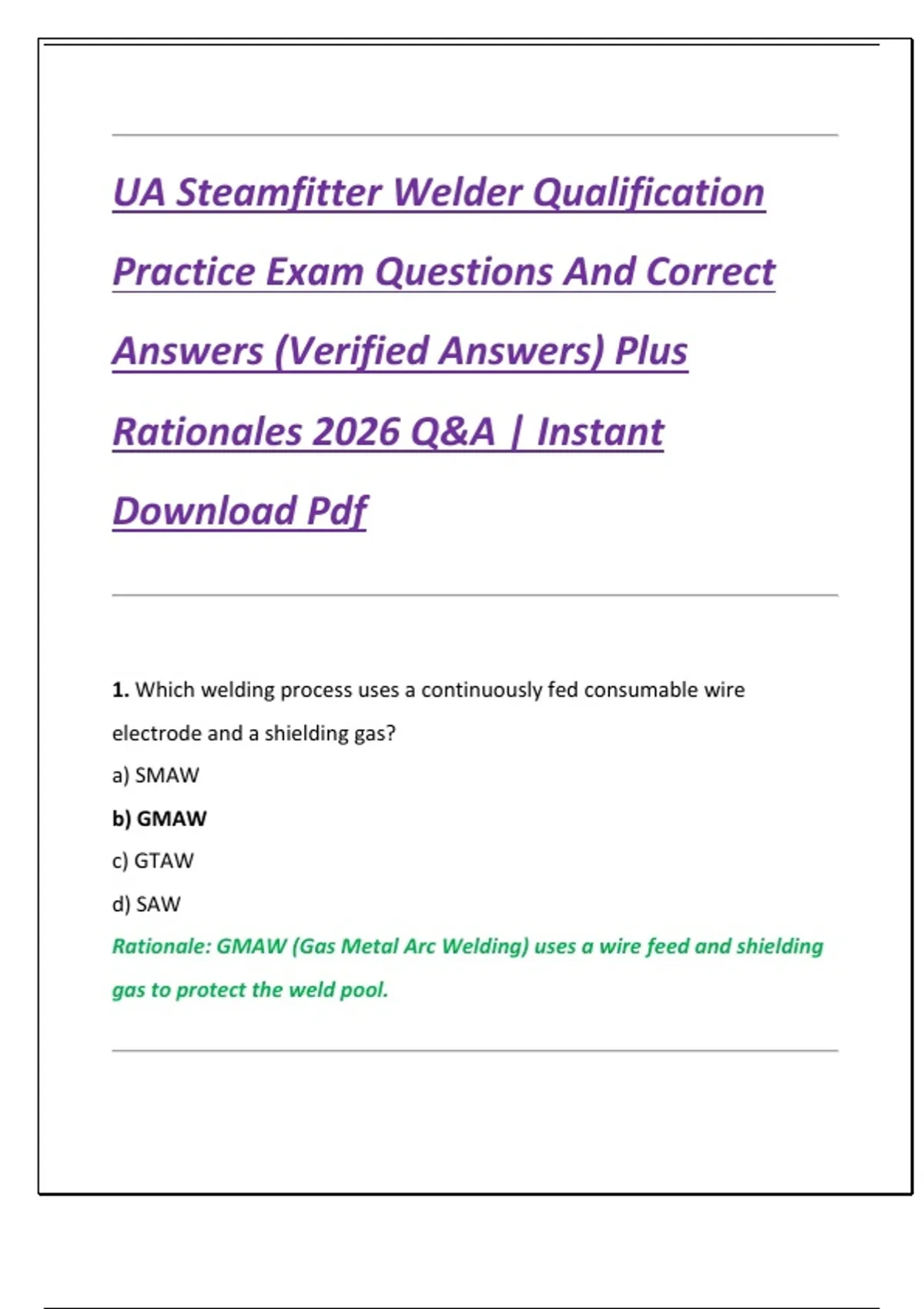 1. Which welding process uses a continuously fed consumable wire