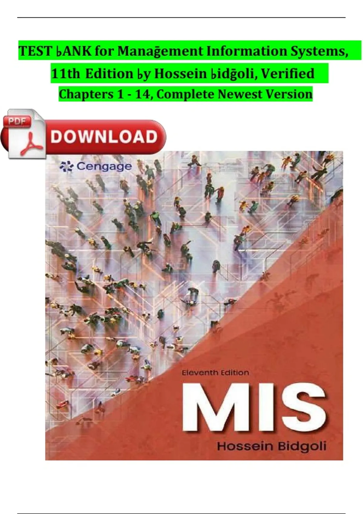 TEST BANK For Management Information Systems, 11th Edition by Hossein Bidgoli, Verified Chapters 1 - 14, Fully Complete A+ Guide Newest Version (9780357883860)