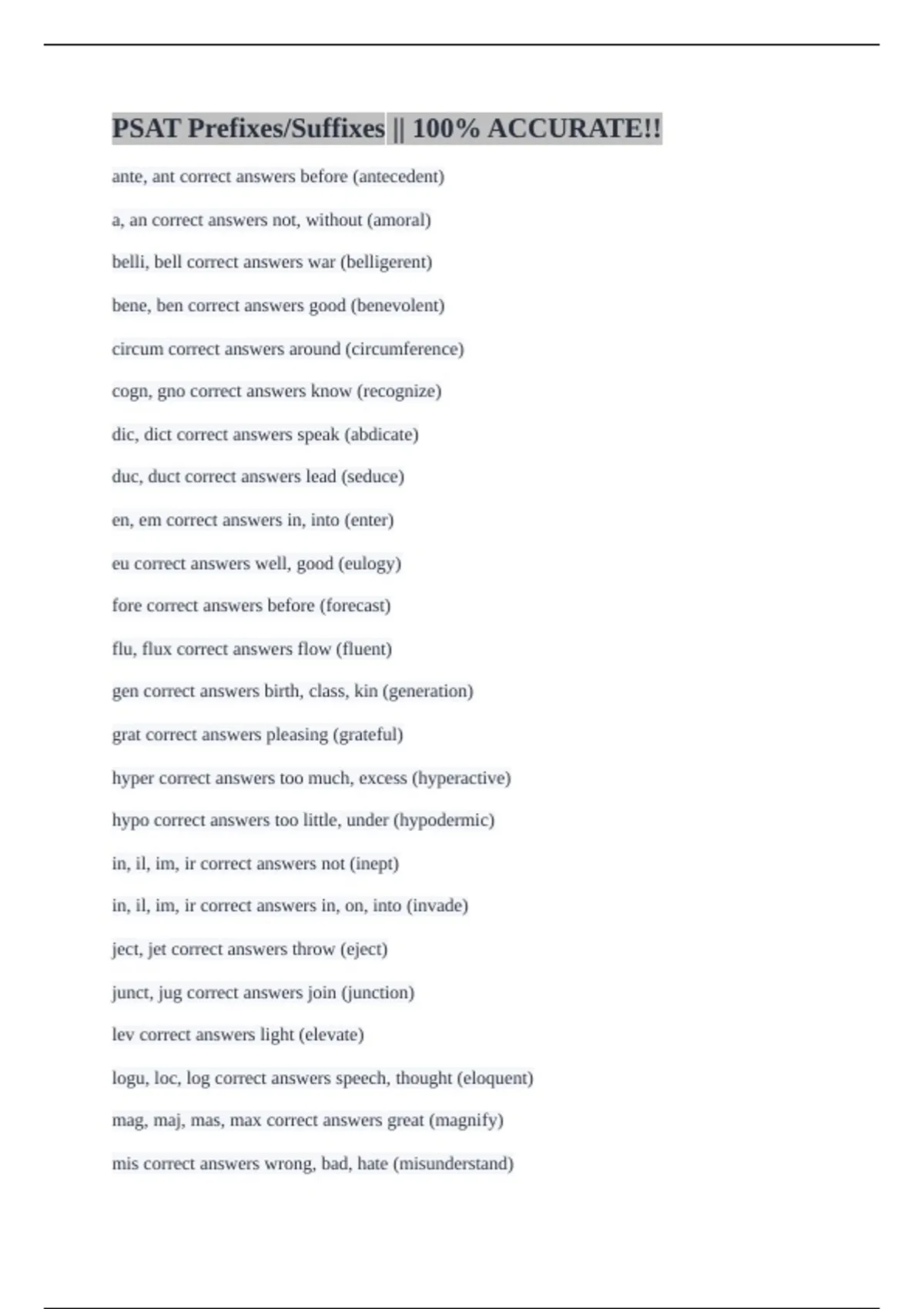 PSAT Prefixes/Suffixes || 100% ACCURATE!!