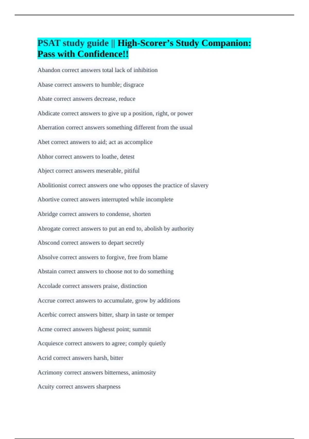 PSAT study guide || High-Scorer’s Study Companion: Pass with Confidence!!
