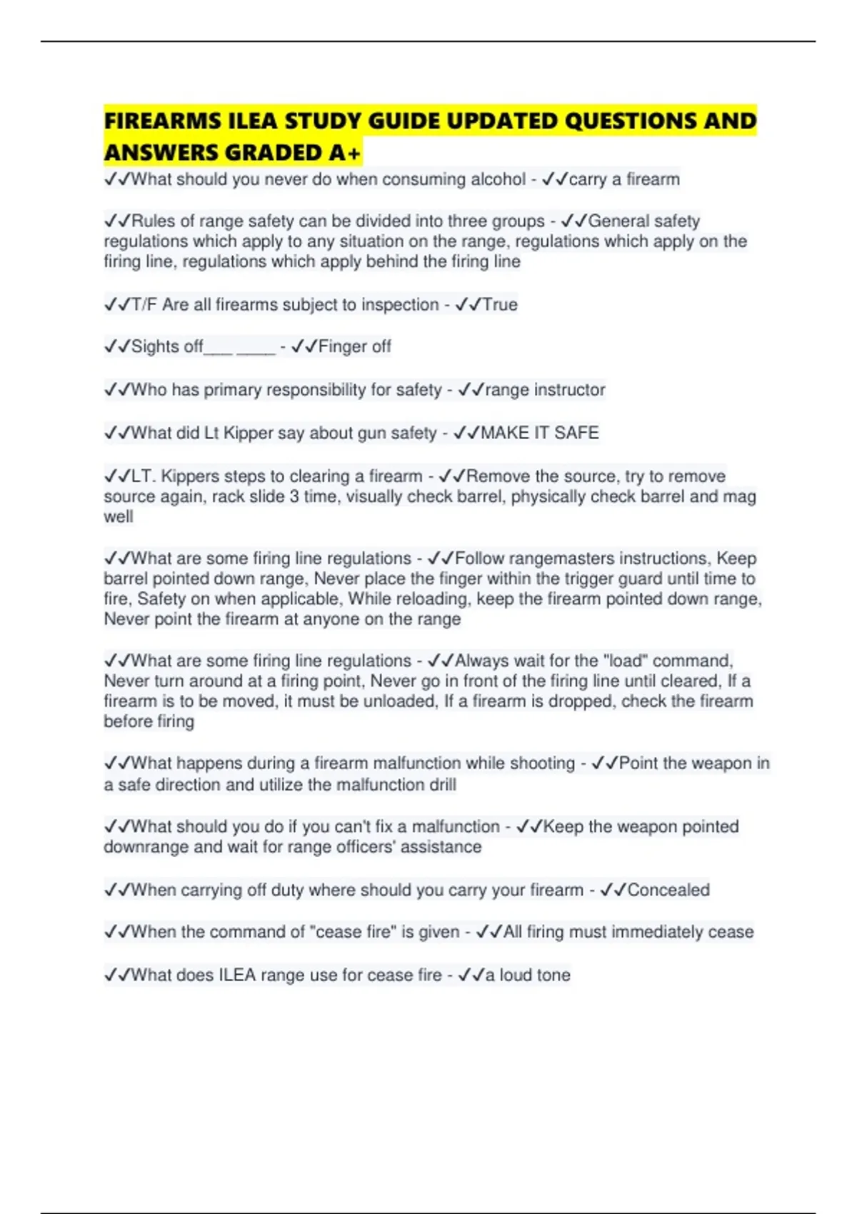 FIREARMS ILEA STUDY GUIDE UPDATED QUESTIONS AND ANSWERS GRADED A+